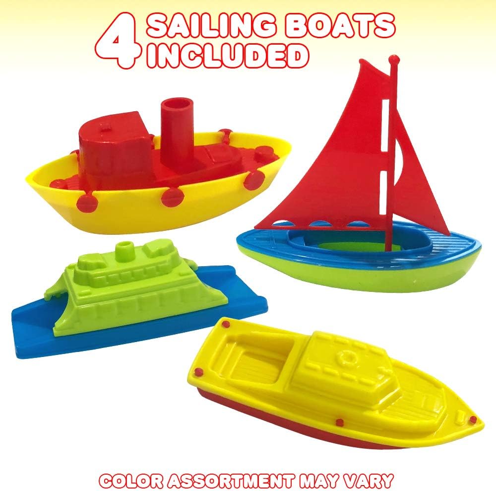 ArtCreativity Toy Boats for Water Play, (4 Pack), Pool Toys for Toddlers 3-5, Floating Toddler Pool Toys, Plastic Sailing Toy Boats for Bathtub, Summer Beach Play, Cute Party Favors for Boys & Girls