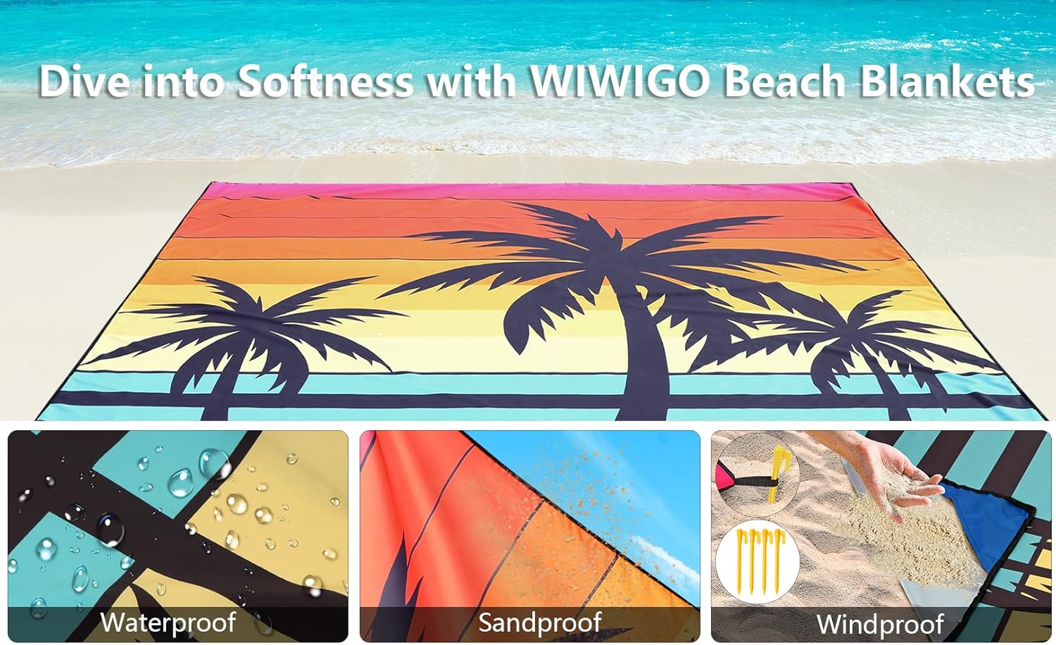 Beach Blanket Waterproof Sandproof Beach Mat 79″ X 83″/10’x9’for 2-8 Adults Quick Drying Outdoor Picnic Mat Beach Accessories for Travel, Camping, Hiking