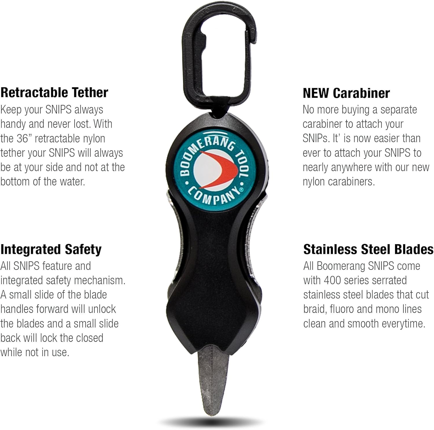 Boomerang Tool Company SNIP Fishing Line Cutters with Retractable Tether and Stainless Steel Blades that Cut Braid, Mono and Fluoro Lines Clean and Smooth!