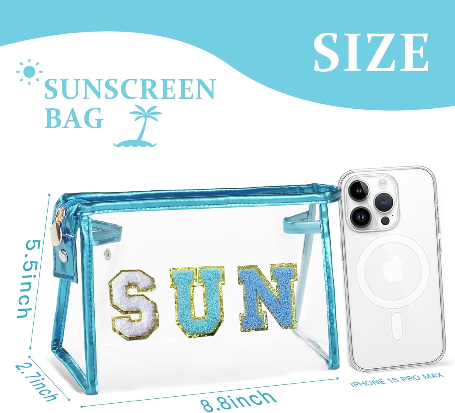 COSHAYSOO Sunscreen Bag Clear Makeup Toiletry Pouch Beach Vacation Essentials for Women Teen Girls Easter Basket Stuffers Gifts Summer Pool Travel Must Have Accessories Waterproof Stuff