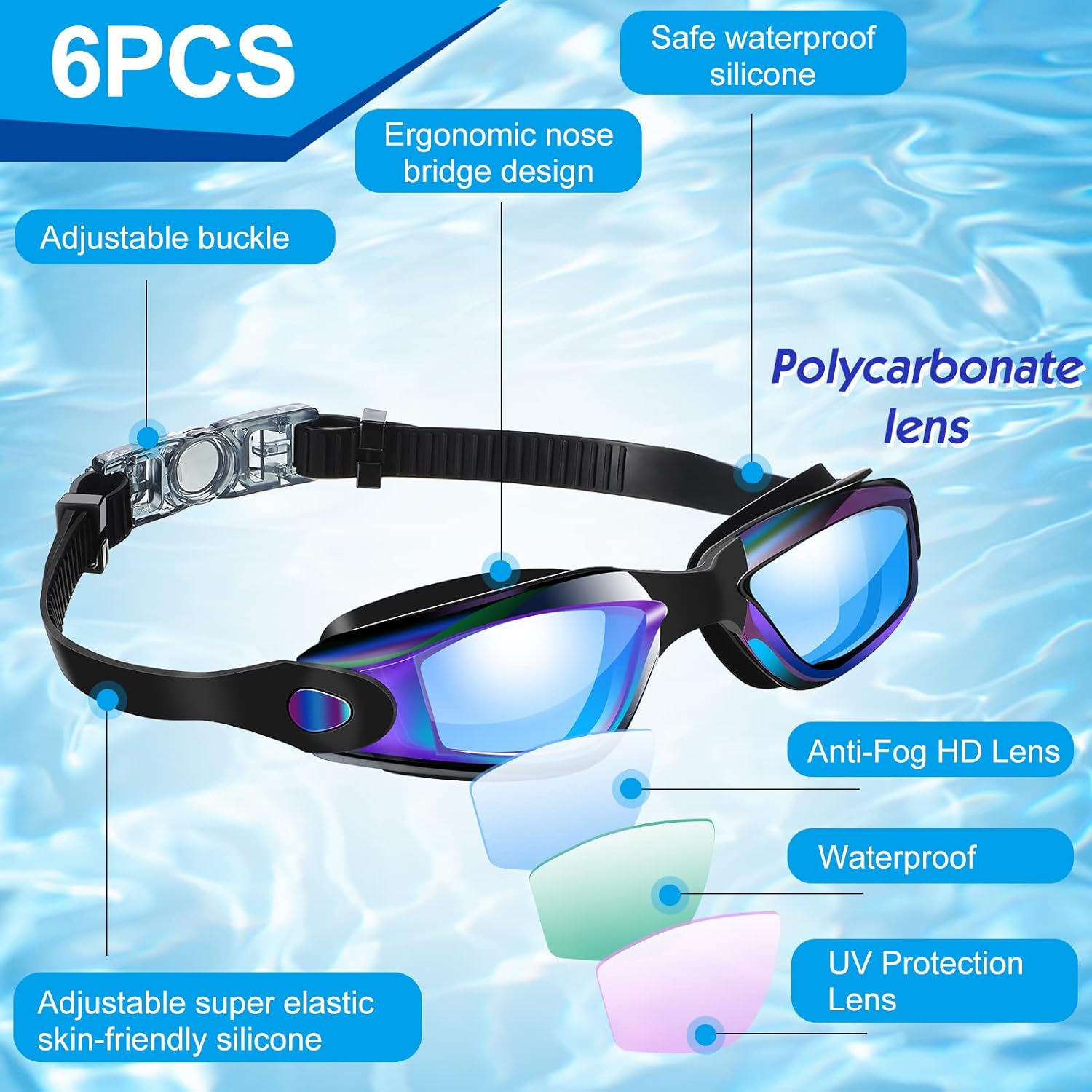 - Includes 6 pairs of goggles for versatility.