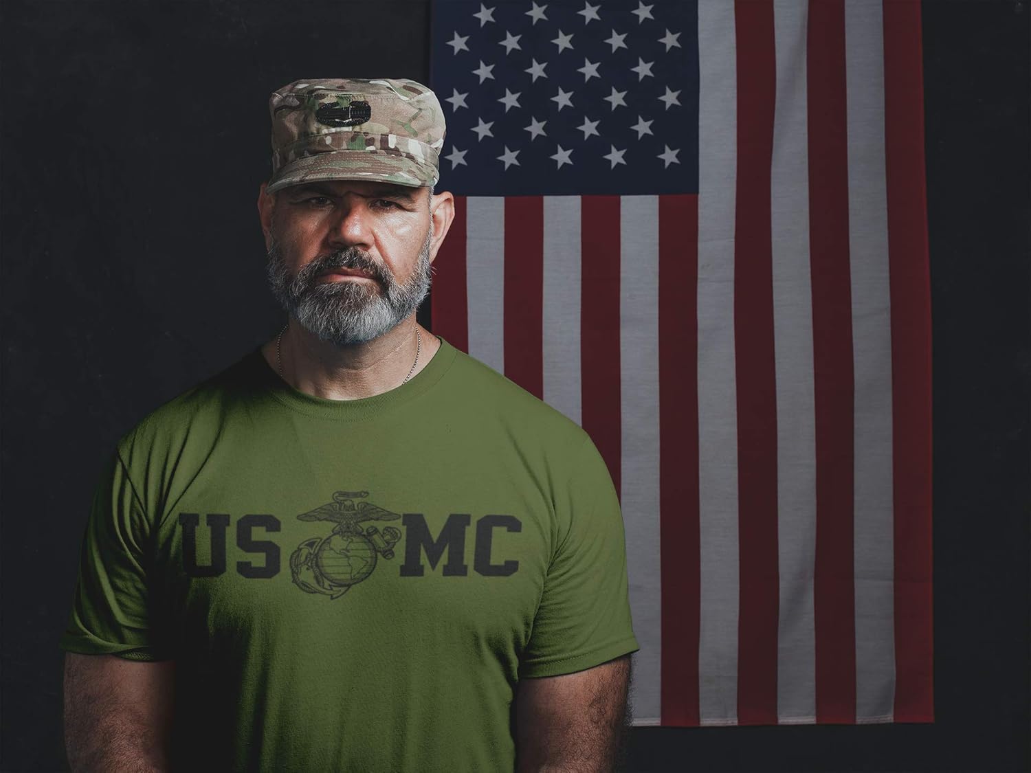 Lucky Ride Marine Corps Bull Dog Front and Back USMC Men’s Military T-Shirt