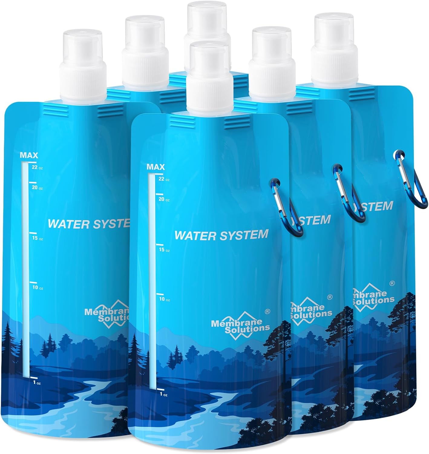 Membrane Solutions Collapsible Water Bottle 23oz, Foldable Pouch Water Bottle with Carabiner, BPA-Free, Leakproof for Traveling Camping Hiking Cycling Yoga Sports Outdoor Essentials