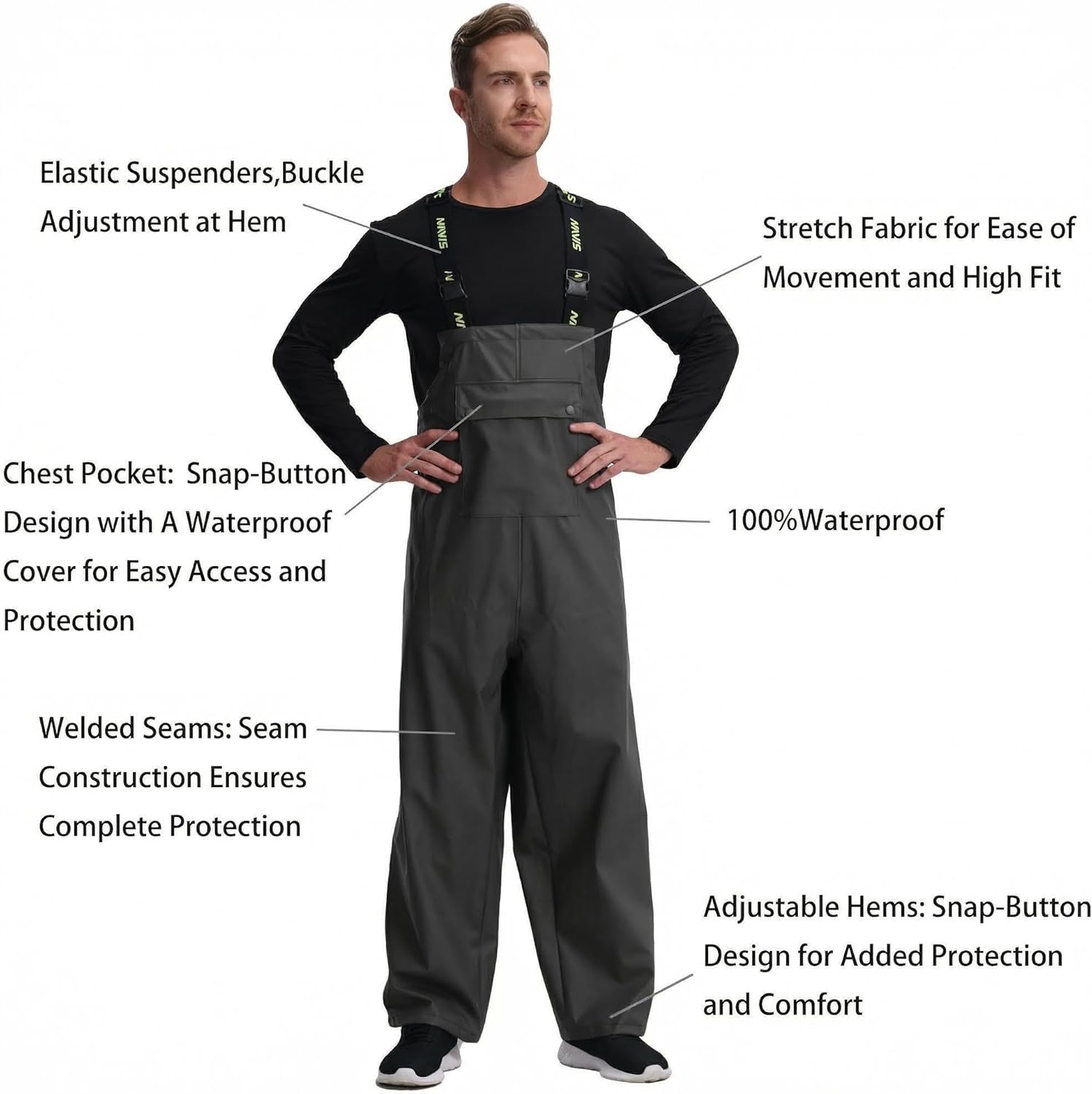 Men’s Waterproof Workwear Bib Overalls – Heavy Duty Stretchable Rain Bibs for Fishing & Outdoor Work