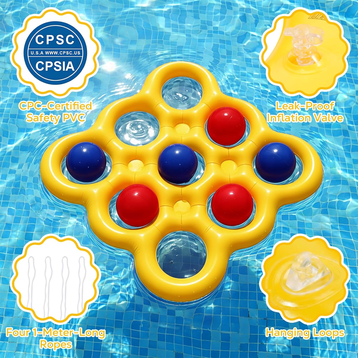 Enjoy hours of fun with the MoKo Pool Water Toys Tic-Tac-Toe Games Set. This inflatable float measures 53"x53" and comes with 10 inflatable balls (5 red and 5 blue), making it perfect for family gatherings or pool parties. The game merges the classic Tic-Tac-Toe with water sports, providing a fun way to challenge your mind and reflexes while enjoying the water. Made from thickened PVC, it offers excellent elasticity and durability, ensuring a safe play experience. The quick inflation feature allows you to set up in minutes, so you can dive into the fun without delay.