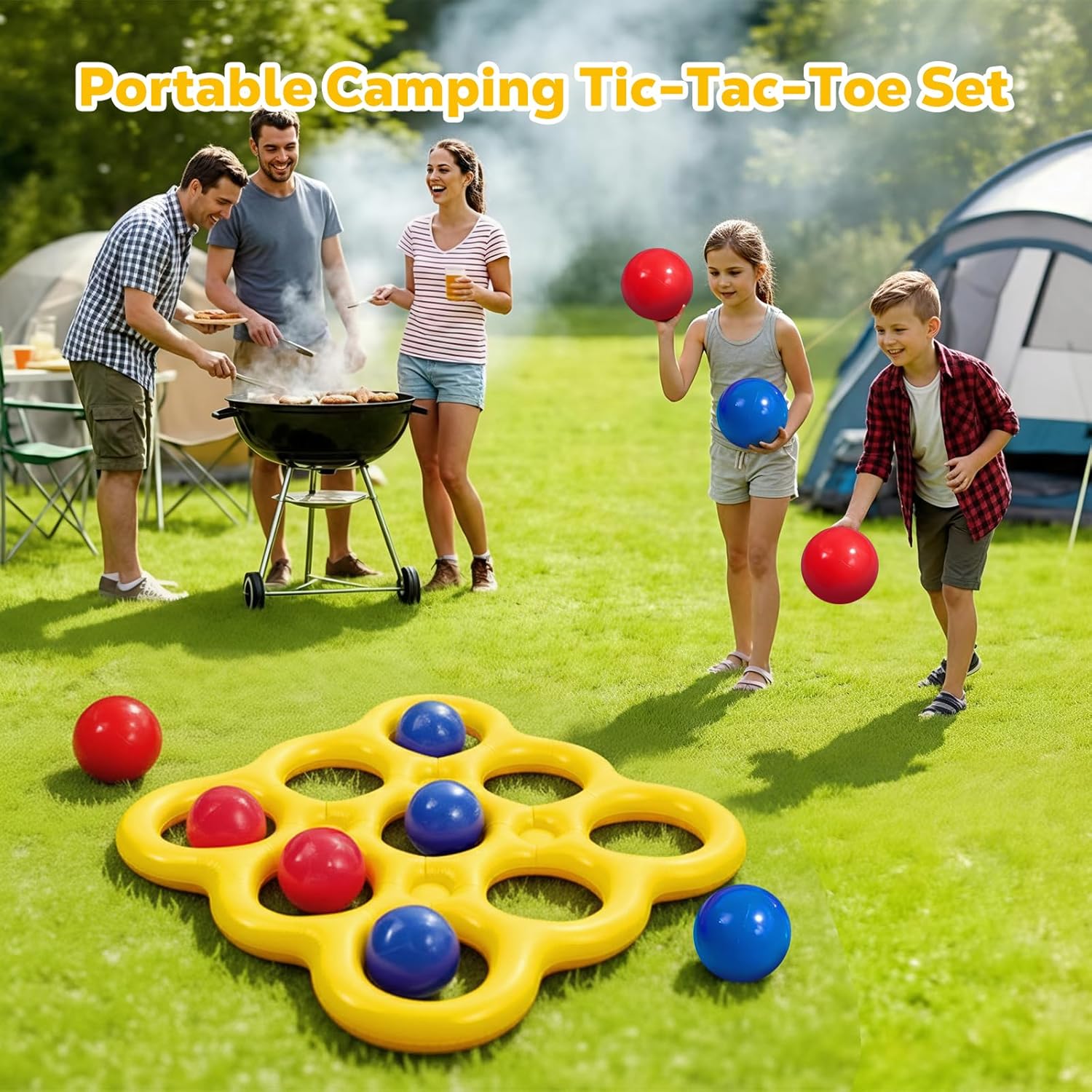 - Includes inflatable Tic-Tac-Toe board