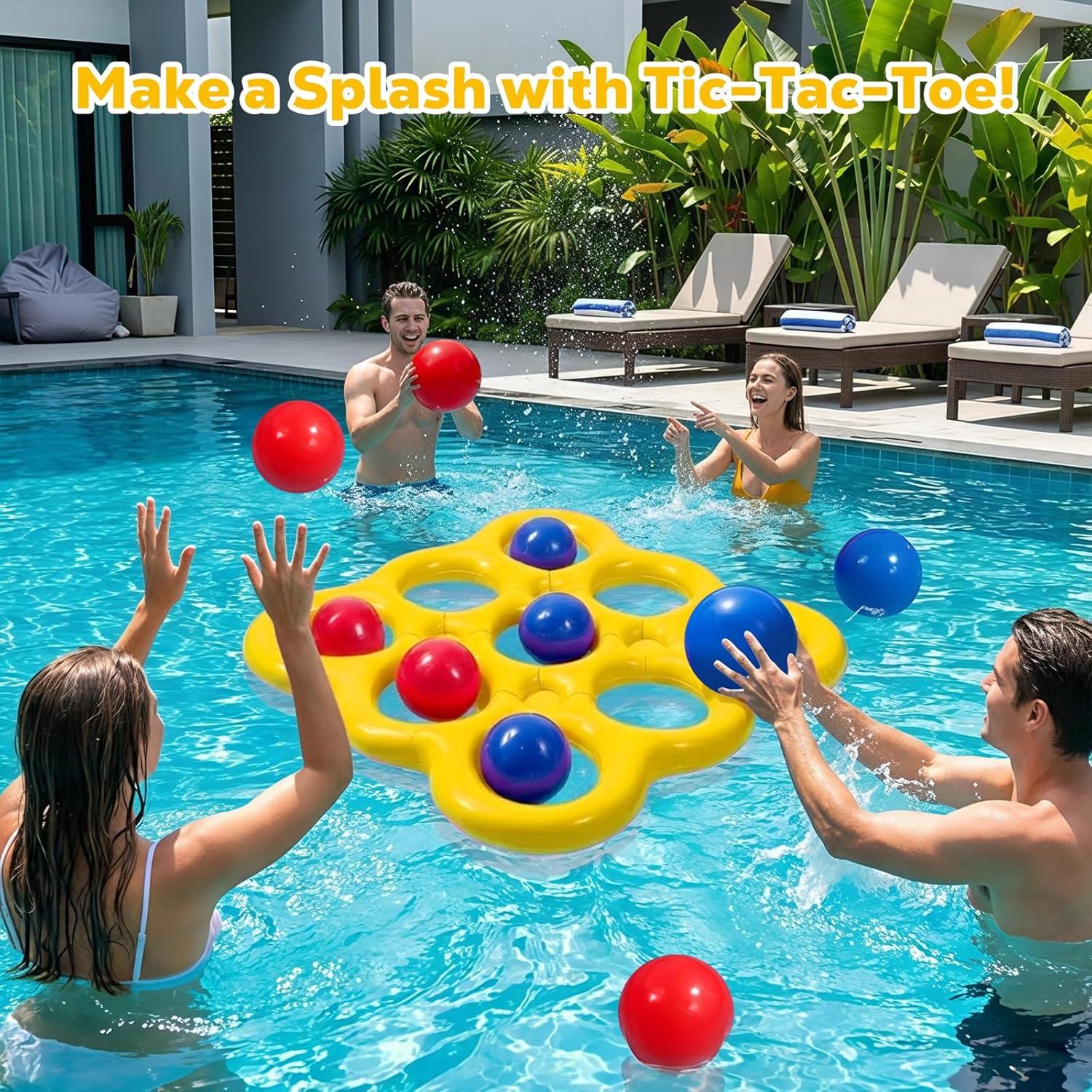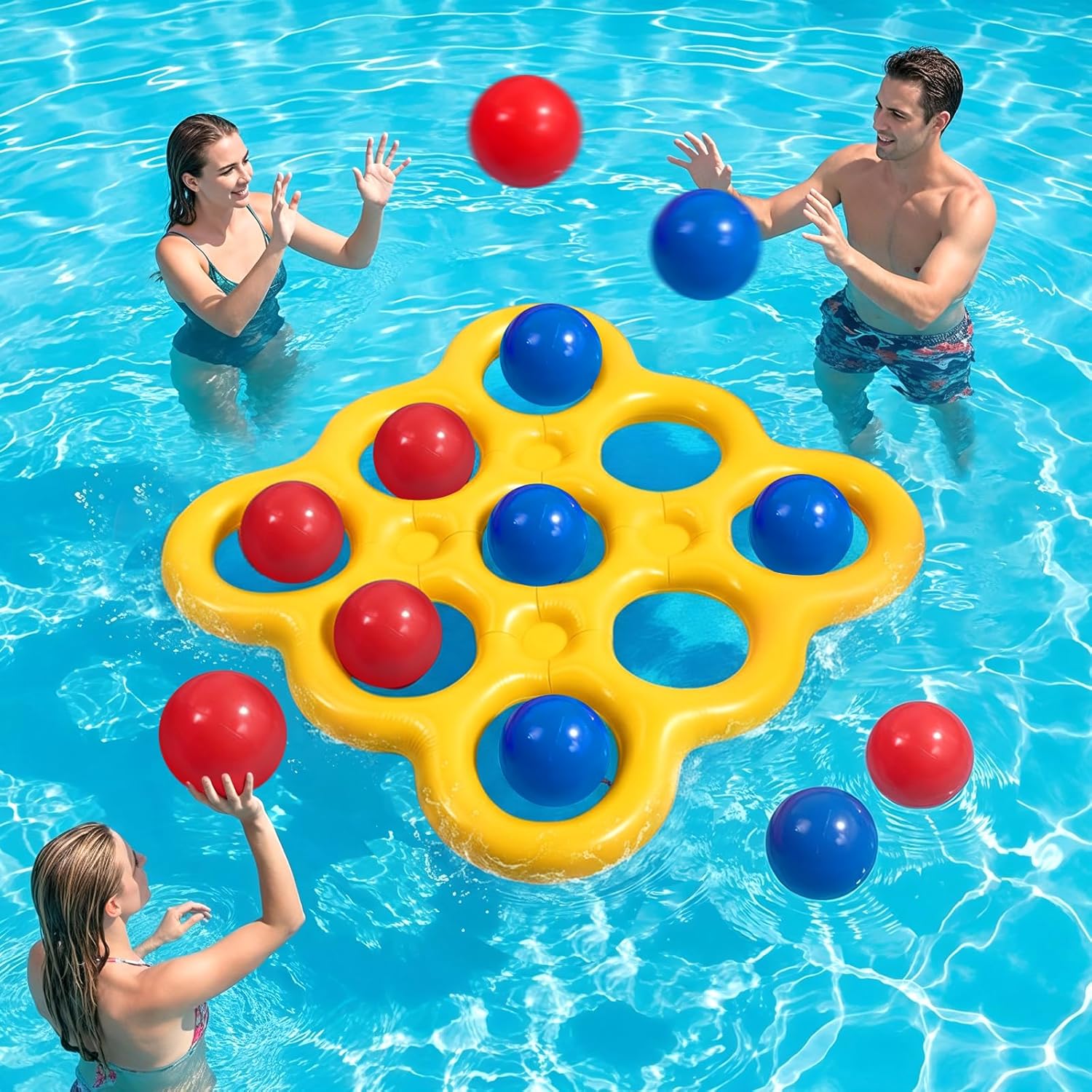 MoKo Pool Water Toys Tic-Tac-Toe Games Set, Inflatable Floats Toy with 10 Balls, Pool Games for Family Party Outdoor Beach Adults Teens Kids 2-10 Players