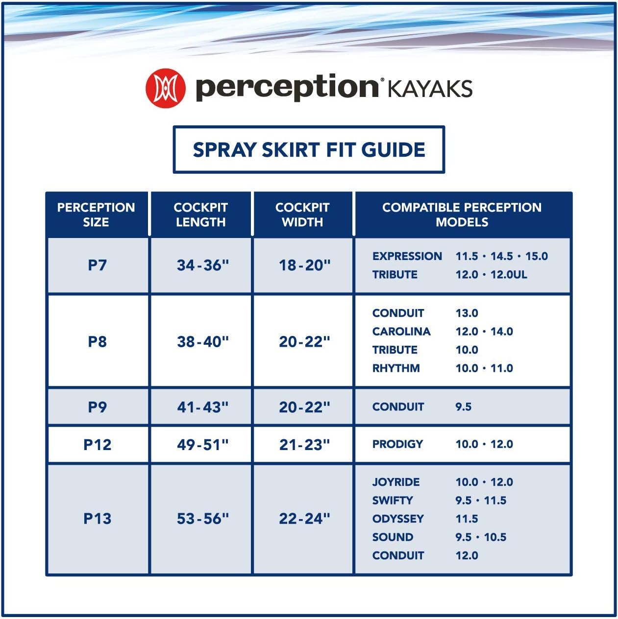 Perception Truefit Spray Skirt | Kayak Spray Skirt For Sit Inside Kayaks | Size P7 thru P12