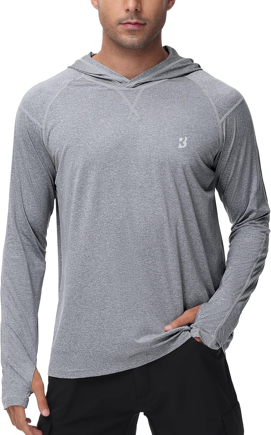 Roadbox Mens UPF 50+ Fishing Shirts, Long Sleeve UV Sun Hoodie, Hiking Running Swim Athletic Workout Shirt