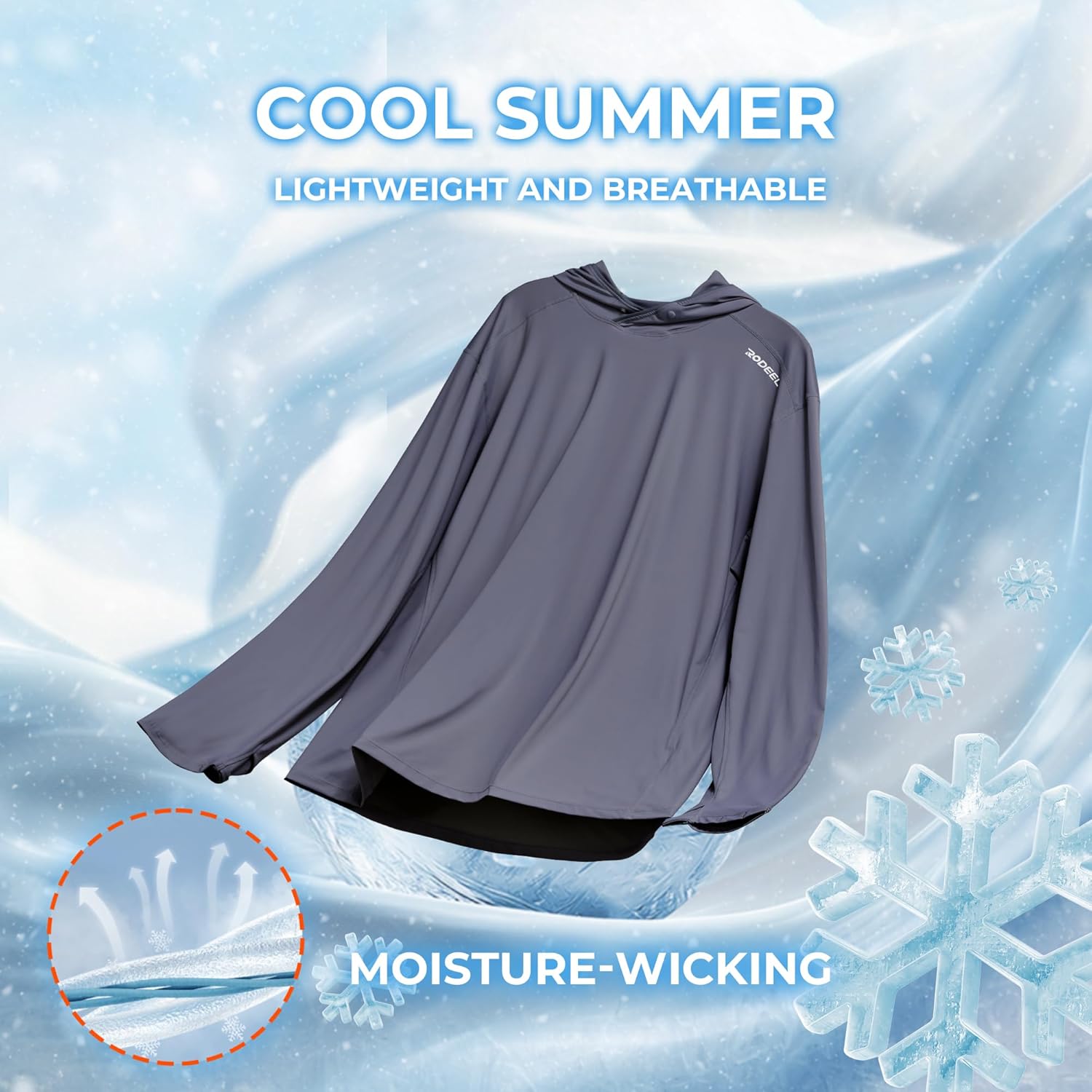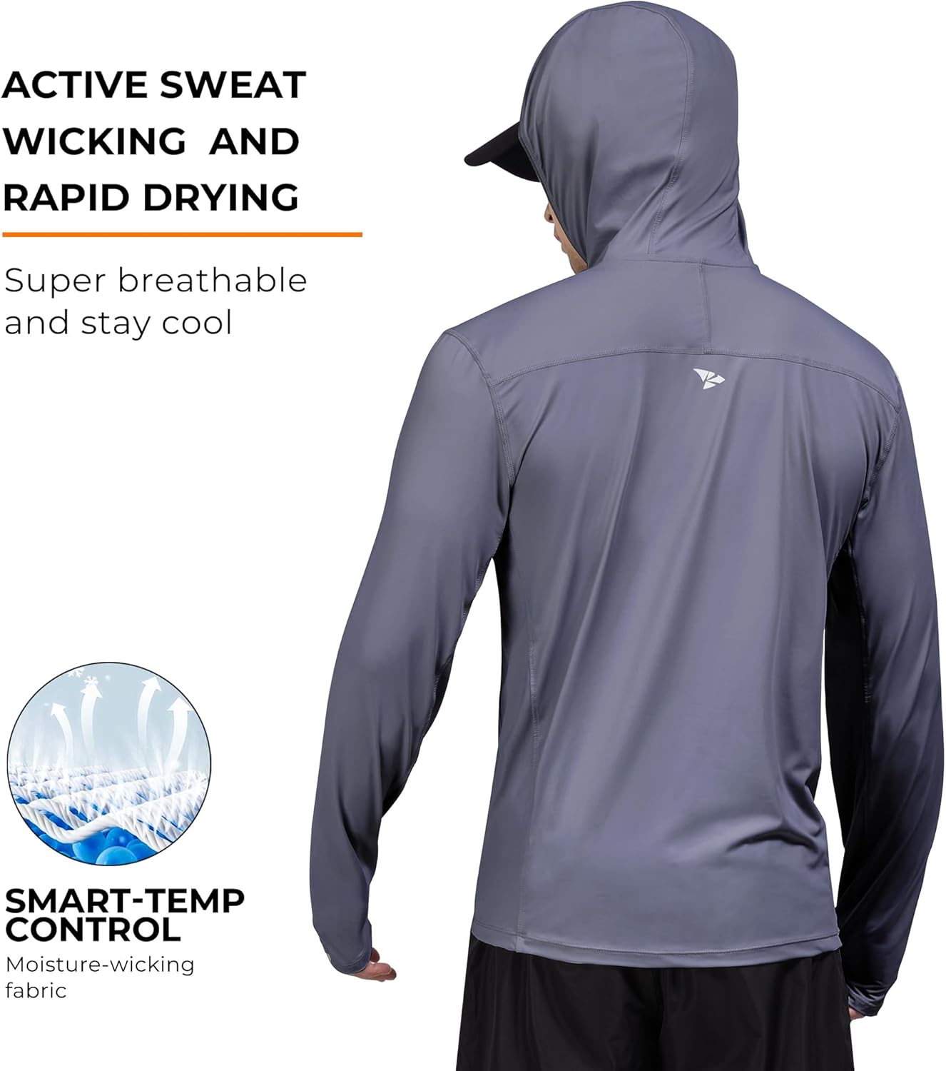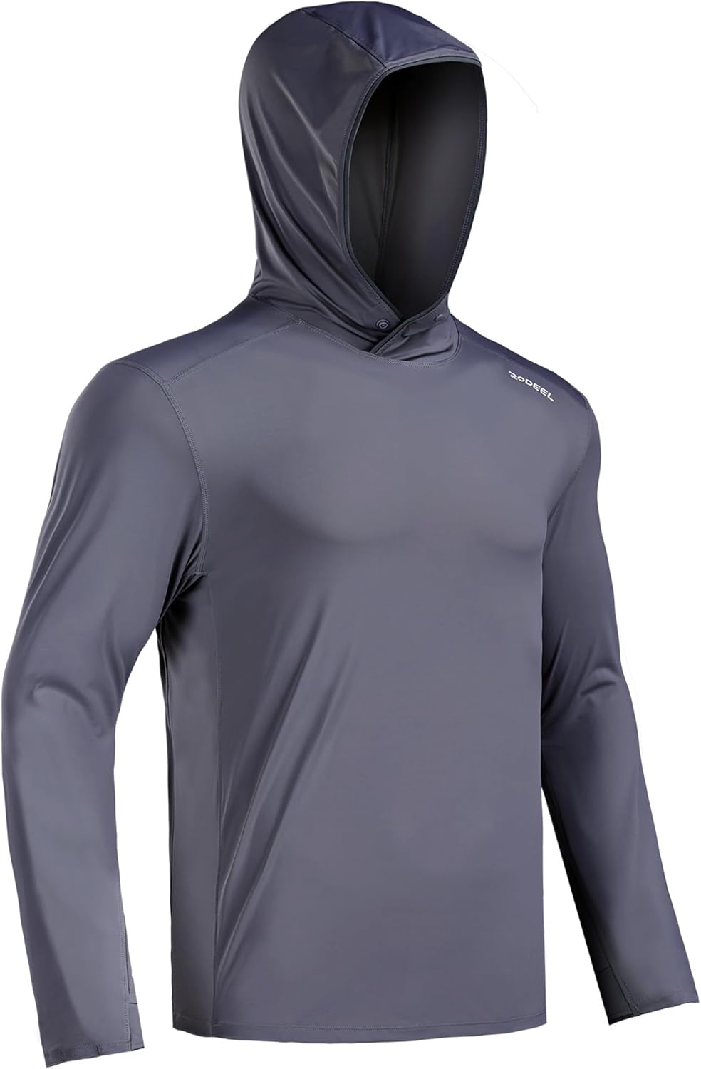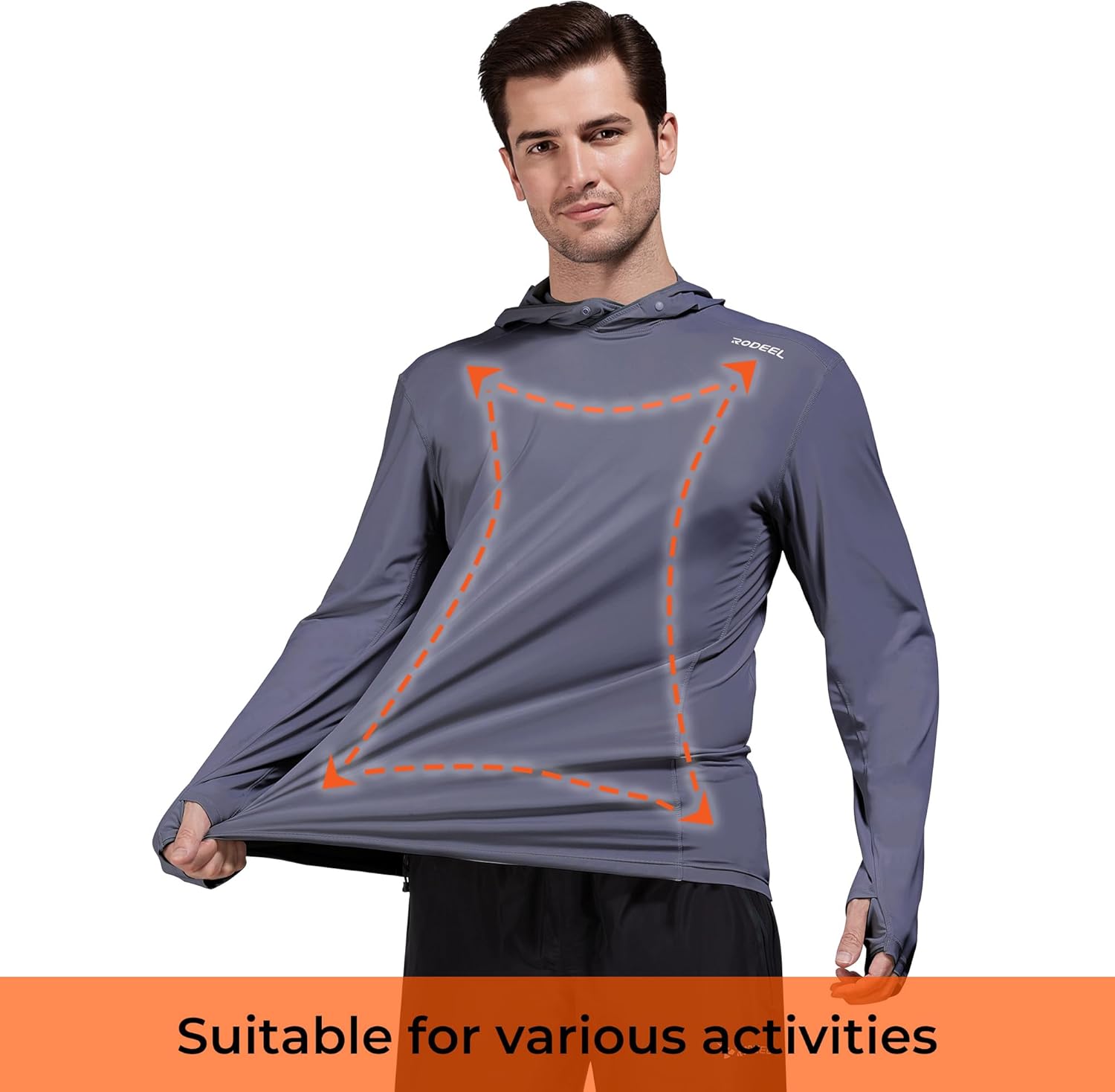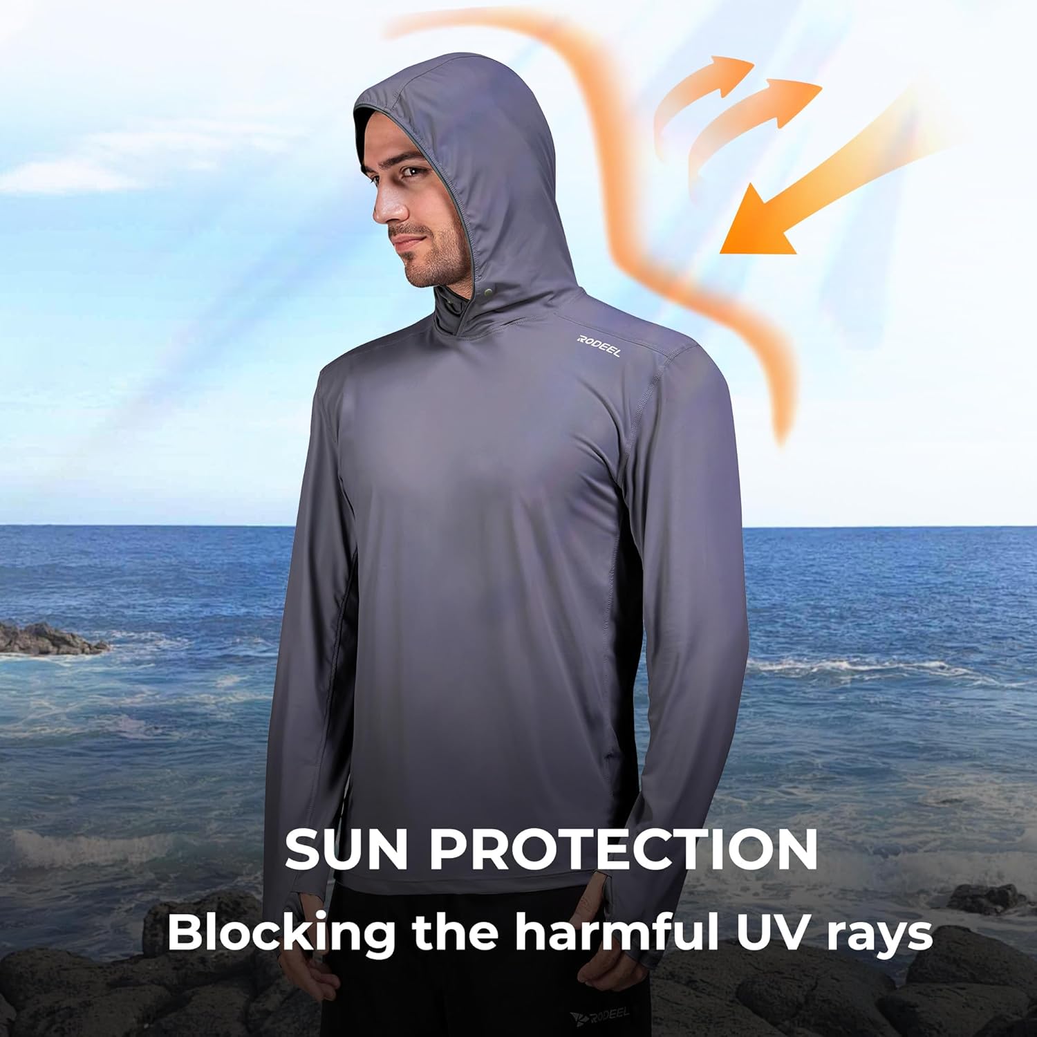 Rodeel UPF 50+ Men’s Long Sleeve Performance Fishing Hiking Shirt Sun Protection with Mask UV Neck Gaiter Hoodie