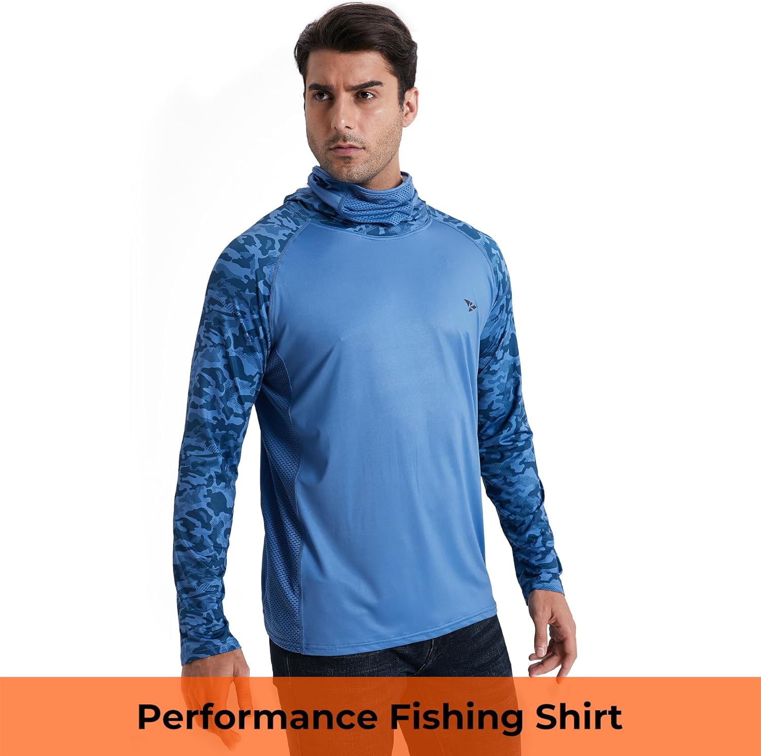 Rodeel UPF 50+ Men’s Long Sleeve Performance Fishing Hiking Shirt with Mask UV Neck Gaiter Hoodie