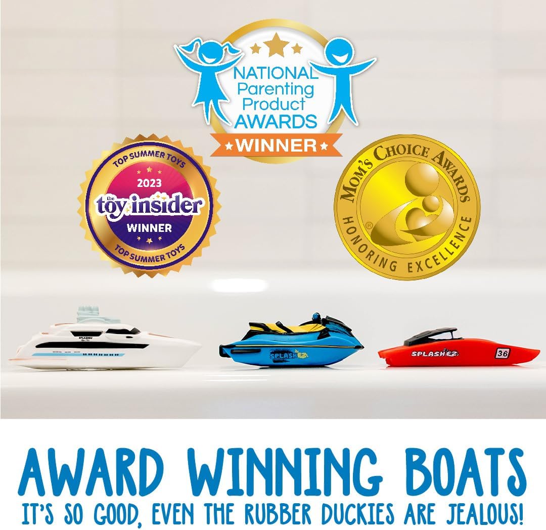 SplashEZ Bath Toy Boats for Toddlers, Mold Free Boat Bath Toys for Kids & Toddlers, No Hole for Water Floating Ships for Bathtub, Pool, Shower for Boys & Girls, 3-Pack: Jet Ski Yacht Catamaran