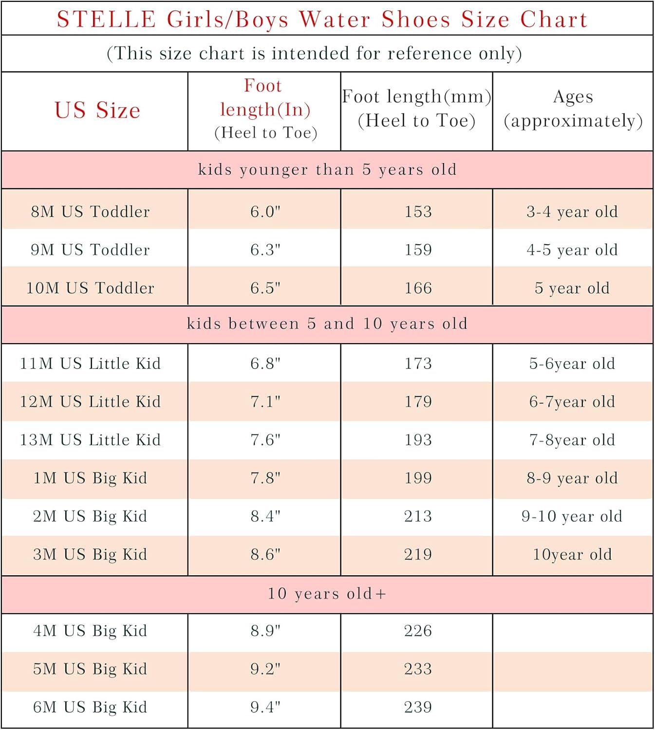 What sizes are available for the Stelle Kids Water Shoes?
