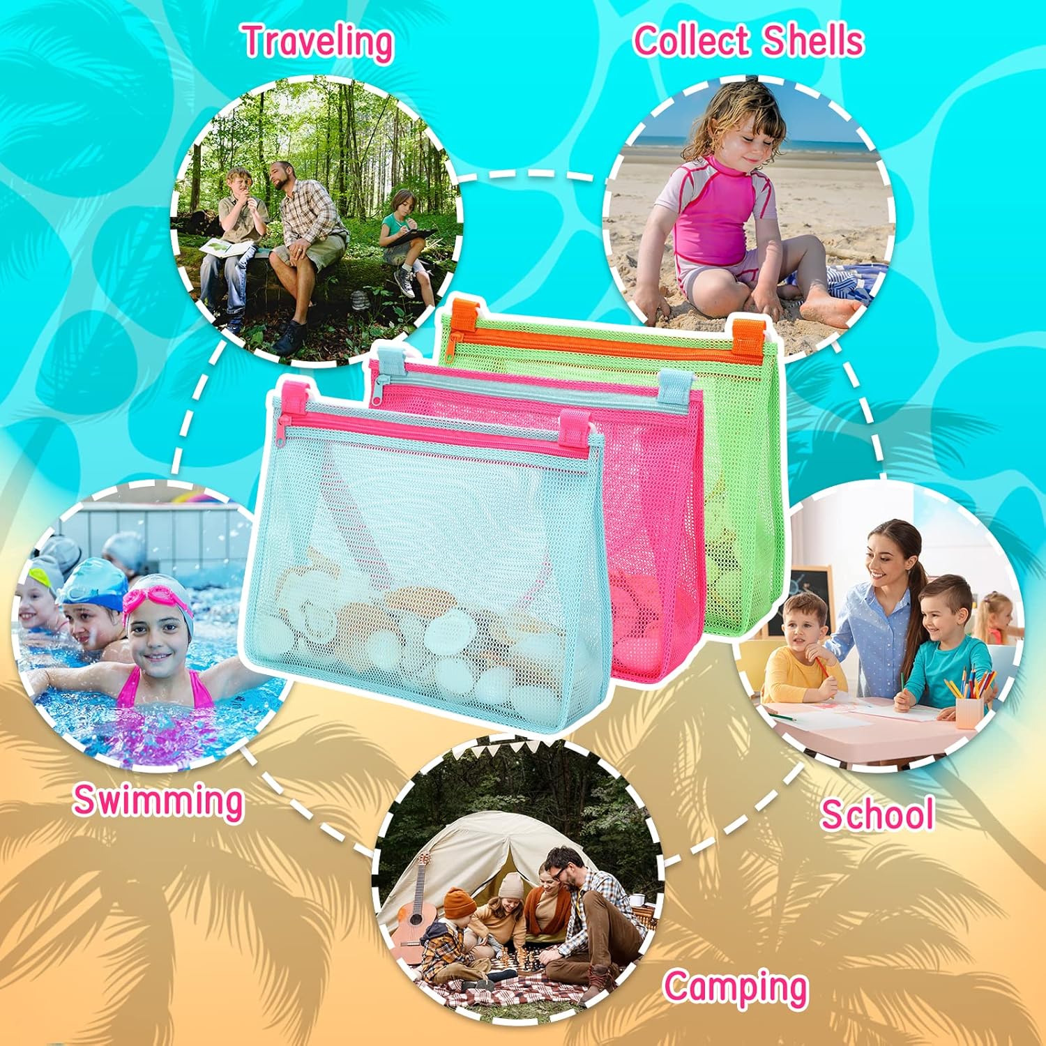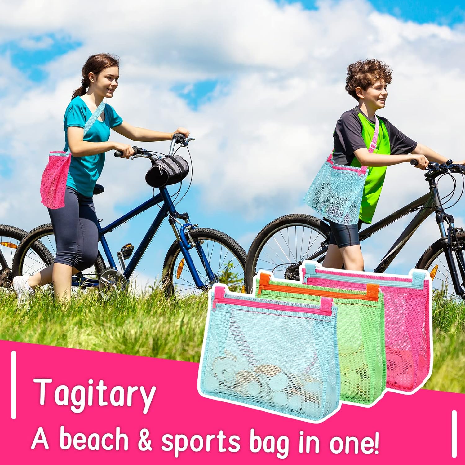 Welcome to Tagitary's store! The Tagitary Beach Toys Large Mesh Beach Bag is perfect for kids who love collecting shells, rocks, and fossils at the beach. The mesh design allows sand to filter through, ensuring that children can enjoy their clean treasures. This bag is not only great for beach outings but also serves as a versatile pool bag and sports accessory holder.