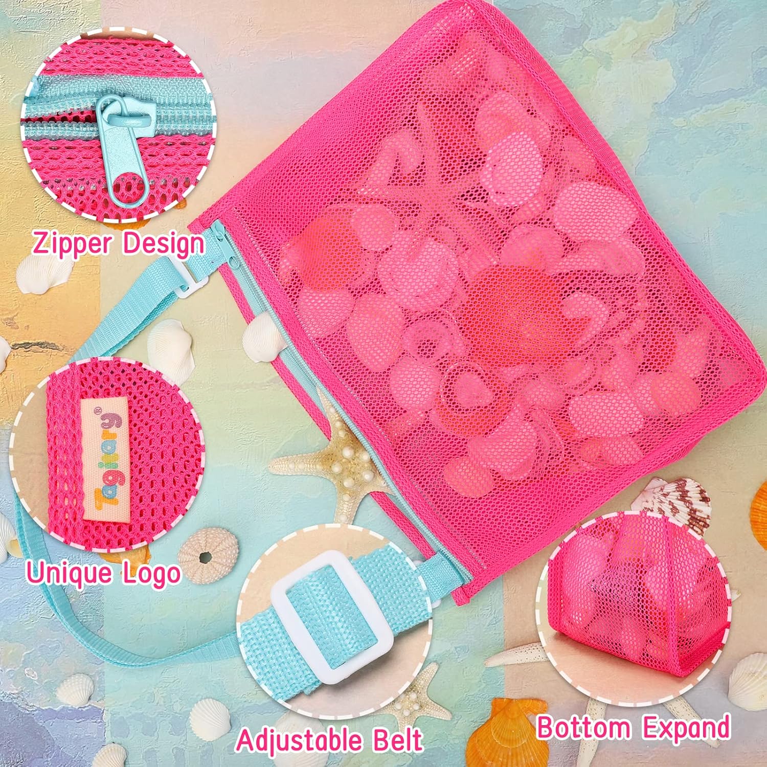 The main purpose of the bag is to help kids collect shells, rocks, and fossils at the beach while filtering out sand.