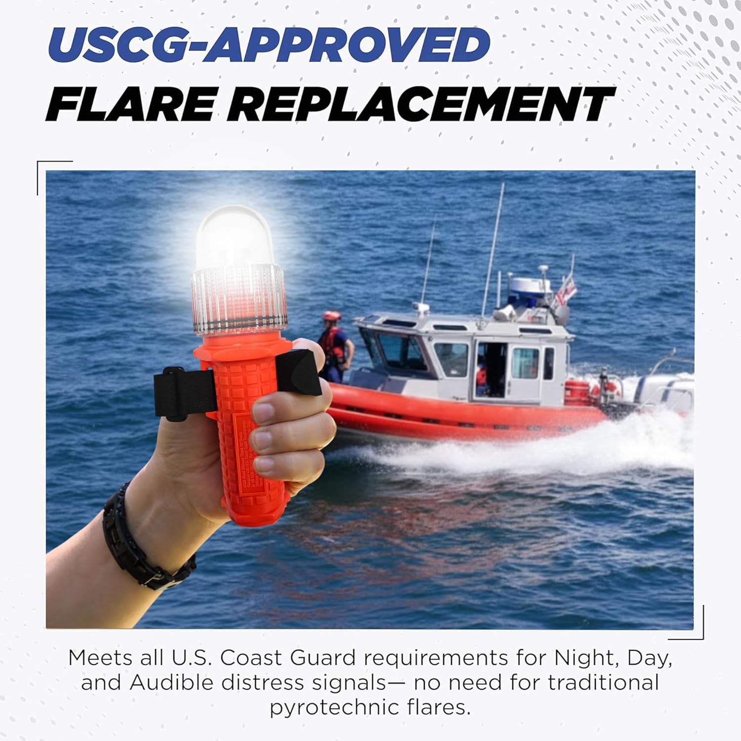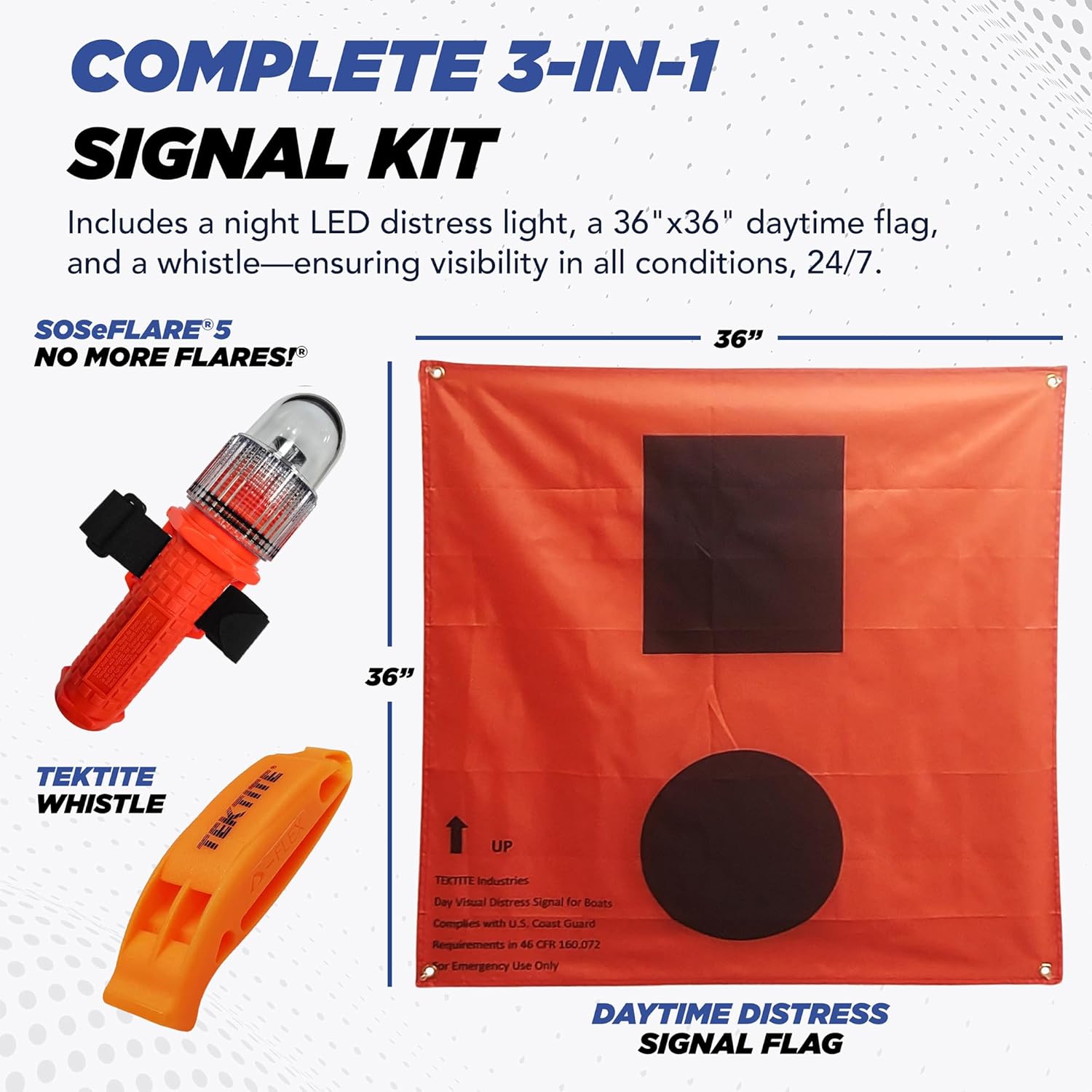 TEKTITE® SOSeFLARE 5 NO MORE FLARES! Electronic Boat Distress Flare w/Flag and Audible Signal Kit- USCG & SOLAS Compliant Marine Safety Signal – Waterproof LED & Audible Locator for Boats