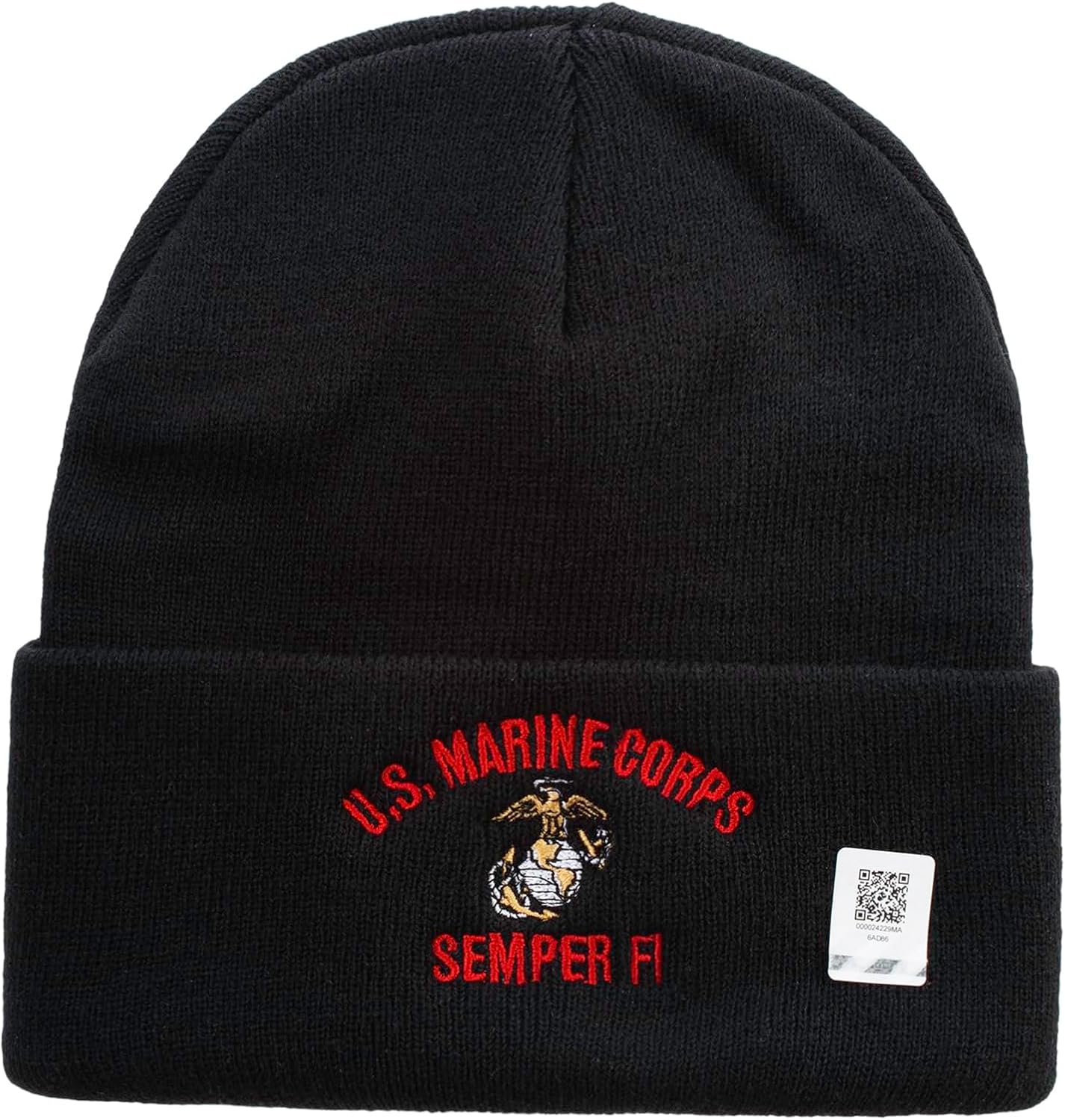 US Marine Corps Semper Fi Logo Embroidered 12 Inch Solid Knit Cuff Long Beanie Made in USA