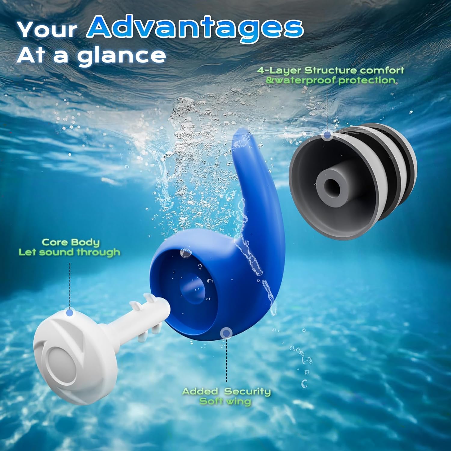 Waterproof Swimming Ear Plugs for Adults – 3 Pairs of Reusable Soft Silicone Swim Earplugs,Perfect for Surfing, Diving,Pool,Showering and Other Water Sports – Keep Water Out and Ear Protection
