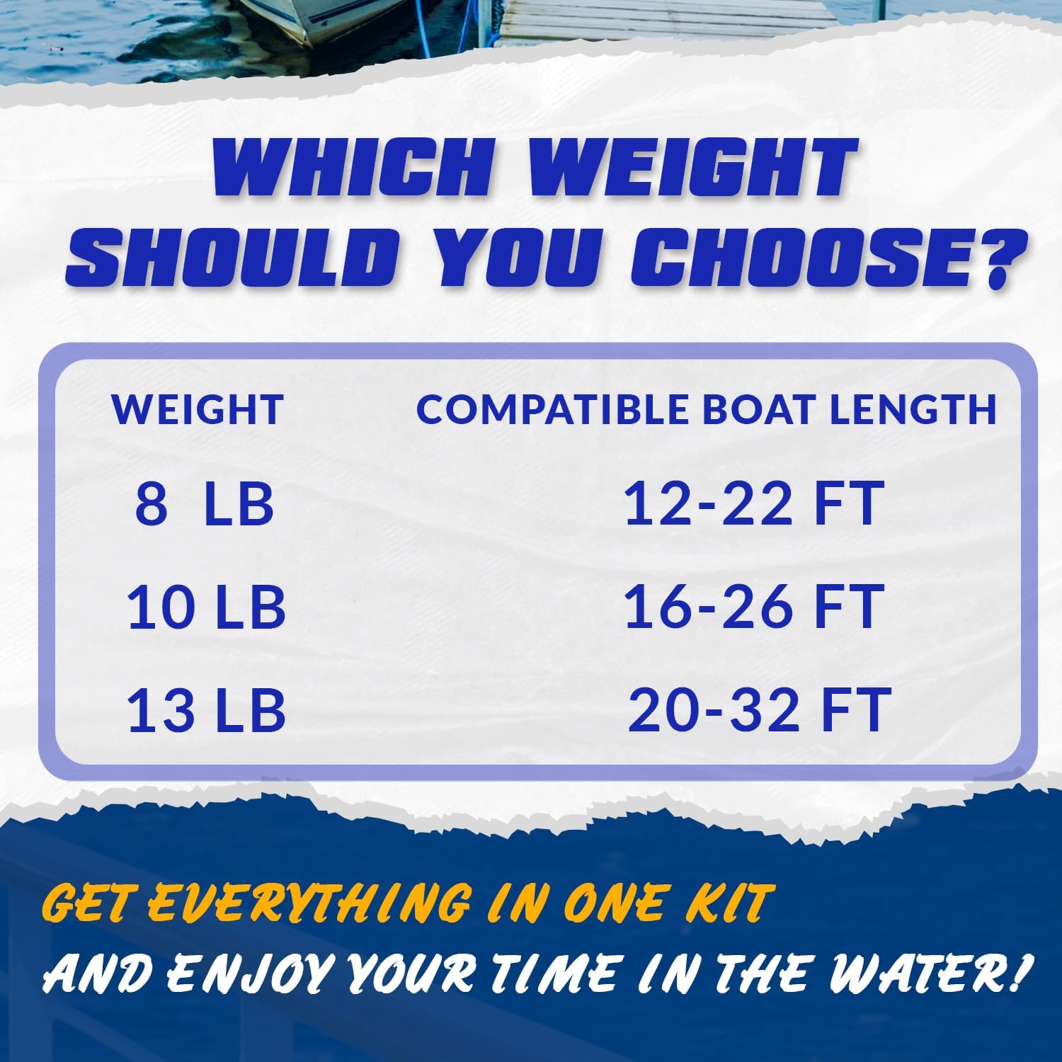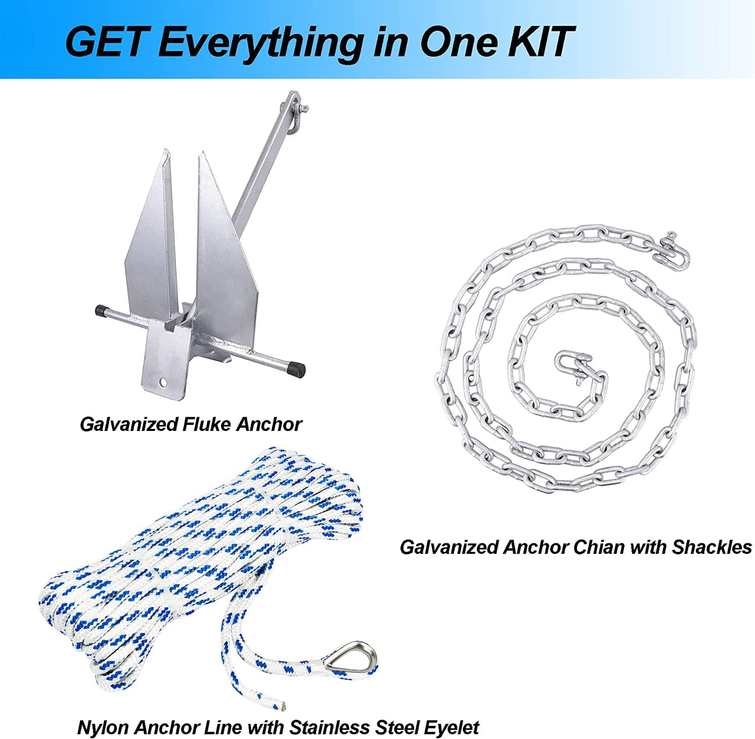 Young Marine Galvanized Fluke Style Anchor Kit Includes Galvanized Fluke Anchor, Rope, Shackles, Chain 8LB 10LB 13LB